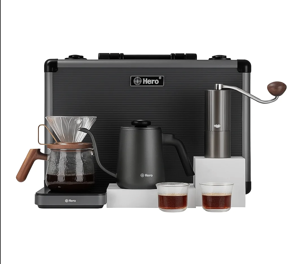 The Hero Z3 Pro Ultra Travel Suitcase is a premium portable pour-over coffee kit designed for coffee professionals and enthusiasts who want exceptional brewing performance wherever they go. Built for convenience and durability, this all-in-one coffee travel set includes carefully selected brewing essentials to support consistent, high-quality manual coffee preparation.